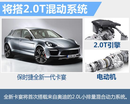 保时捷全新一代卡宴基于大众集团升级版MLB Evo平台打造,此平台由奥迪主导研发。新一代奥迪Q7以及宾利首款SUV添越,均与全新卡宴车型同平台打造。保时捷新车采用了铝合金、碳纤维复合材料等更多轻量化材料的混合使用,车身重量将比现款车型减重100Kg以上,并将首次搭载2.0T小排量混动系统。全新一代卡宴将于2017年正式发布,届时将进一步提升保时捷市场销量。