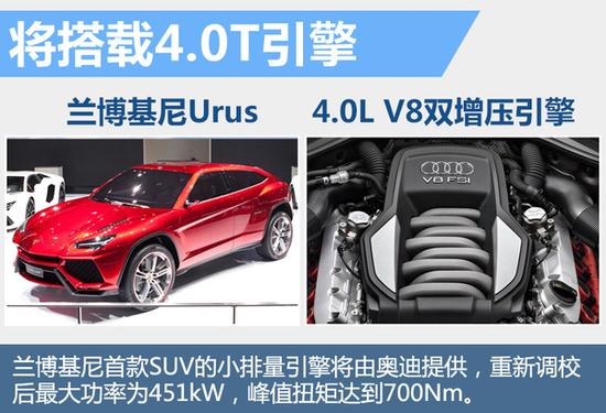 兰博基尼目前在华共计5款车型,其中Aventador系列均搭载6.5L引擎,Huracan系列搭载5.2L引擎,现阶段尚未有搭载小排量引擎的车型。斯蒂芬·温克尔此前在接受采访时证实,兰博基尼首款SUV将搭载4.0L V8双涡轮增压引擎。这将是兰博基尼首款搭载小排量引擎的产品。由于兰博基尼和奥迪同属于大众集团,并且兰博基尼之前被奥迪收购,因此两者间部分技术以及零件的共通化会带来更少的研发成本和更短的研发时间。在动力方面,兰博基尼首款SUV的小排量引擎将由奥迪提供,重新调校后最大功率为451kW,峰值扭矩达到700Nm。
